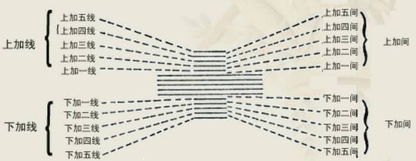 这些临时多出来的“线”和“间”叫做“上加线”和“下加线”。
