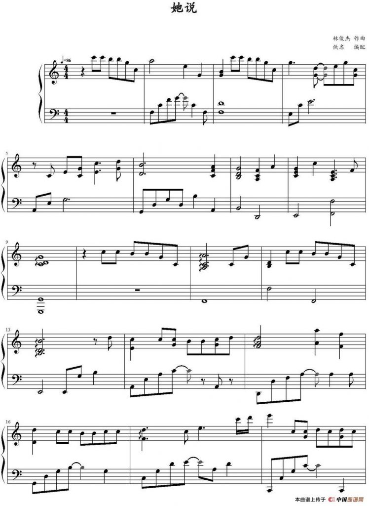 钢琴版《她说》让人不愿关掉的演奏~ 附谱