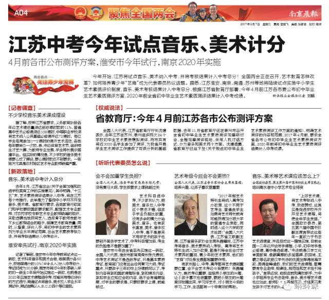 (2017年9月江苏将试点音乐、美术纳入中考)