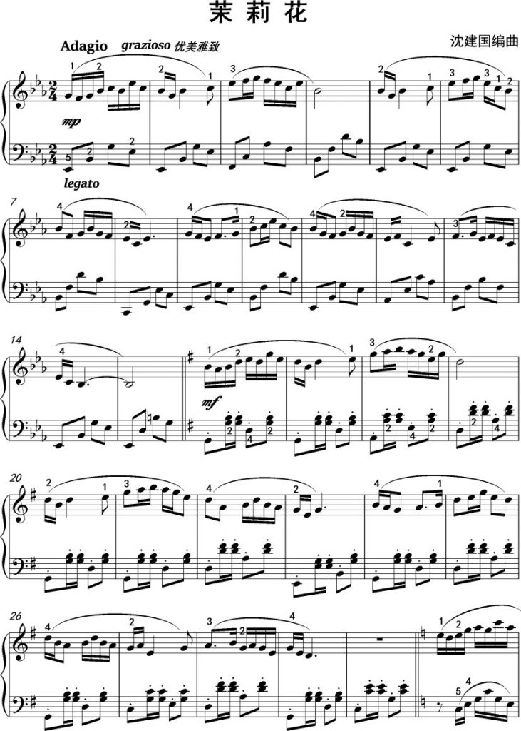 《茉莉花》炫技钢琴版,完美!附琴谱