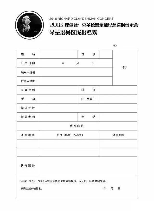 2018全球纪念巡演音乐会琴童招募选拔报名表