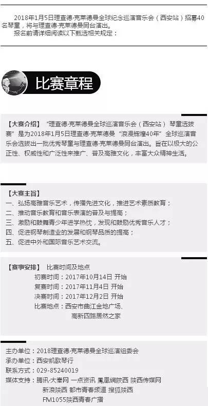 2018理查德•克莱德曼钢琴音乐会西安站及琴童选拔赛