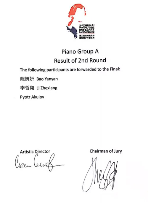 9月18日傍晚,随着第二届珠海莫扎特国际青少年音乐周钢琴及小提琴C组晋级复赛的选手们完成他们复赛阶段的演奏,本届音乐周复赛阶段的比赛正式结束,从今日起,珠海莫扎特国际青少年音乐周进入“决赛时间”。