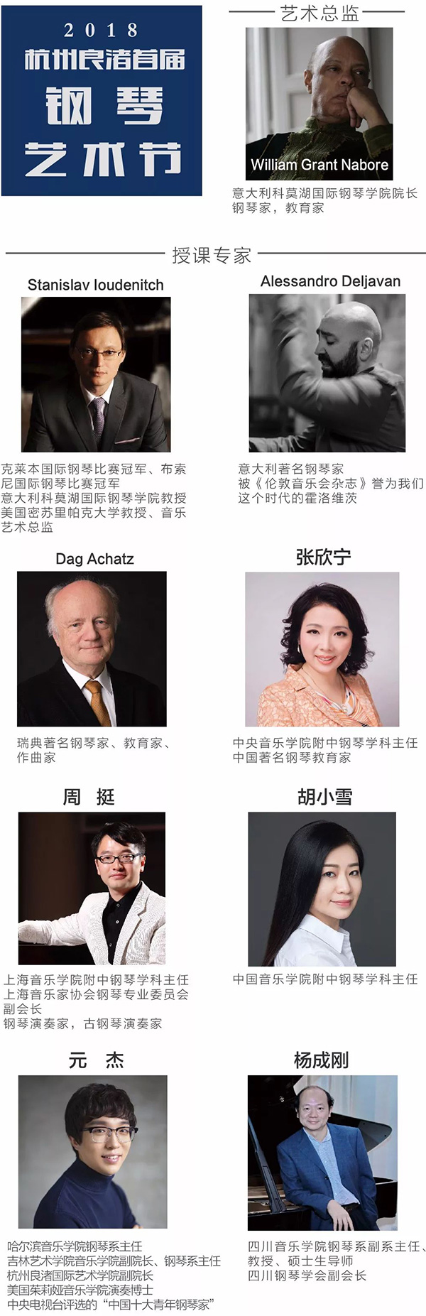 2018首届杭州良渚钢琴艺术节授课专家