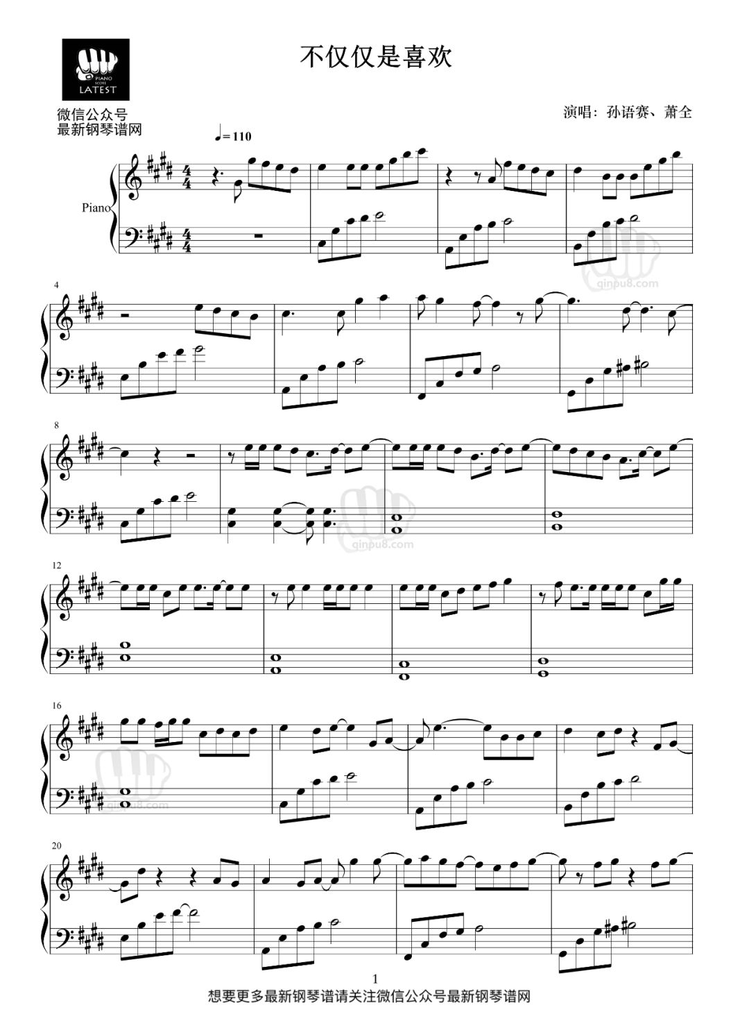 抖音神曲《不仅仅是喜欢》钢琴谱
