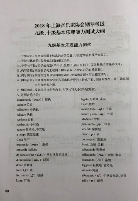 2018年上海音协钢琴考级九级、十级基本乐理能力测试大纲公布