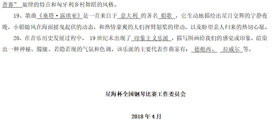 为了进一步推进广大钢琴琴童的音乐知识学习,提高综合的音乐艺术修养,2018年第十七届星海杯全国钢琴大赛的分赛场特增加音乐常识部分的测试。