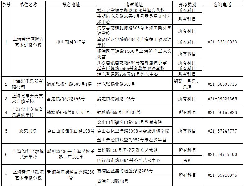 2018年上海音乐学院(市区)暑期社会艺术水平考级报名点