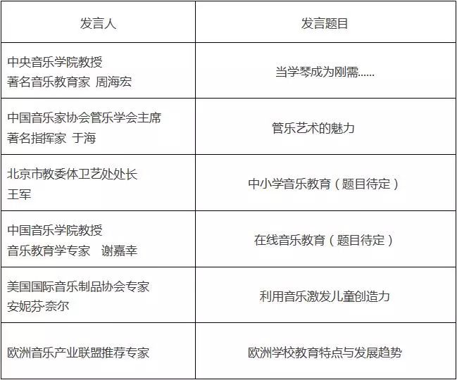 2、主题发言(6个):音教内容体系、幼儿启蒙、中小学教育、社区音乐教育、体制内外音乐教育结合等当今音乐教育领域的热门话题;