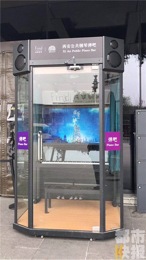 共享钢琴位于西安芙蓉南路曲江书城门口,目前还在测试阶段,市民可以进去体验。测试阶段的收费是十五分钟,只要一分钱。