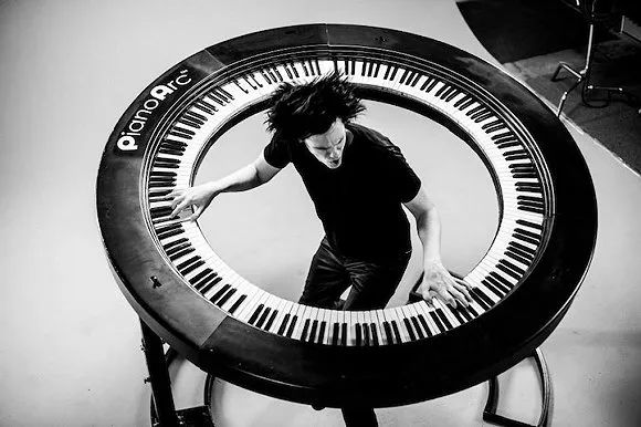 一台正常的、直线形的钢琴只有88个键。但对于Lady Gaga的主键盘手来说,这显然不够炫酷。为了能弹上一架独一无二的钢琴,Brockett Parsons不惜组了一个设计师团队,打造了自己的环形钢琴(The Piano Arc)。