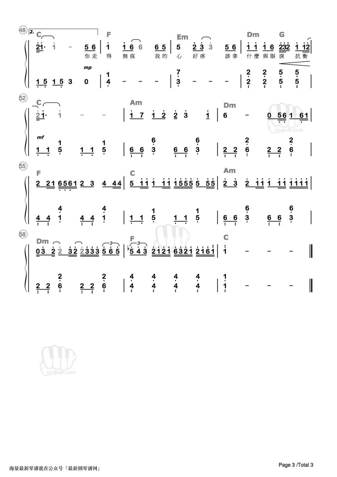 《再见只是陌生人》钢琴谱|最近抖音很火的歌曲,是庄心妍的伤心情歌。